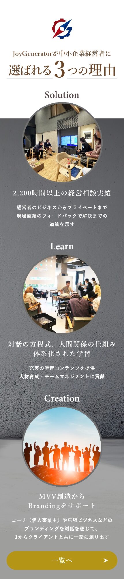 また、経営者様を多角的にサポートする各サービスを個別のLPで展開し、それぞれの強みやメリットがしっかり伝わる構成としました。